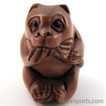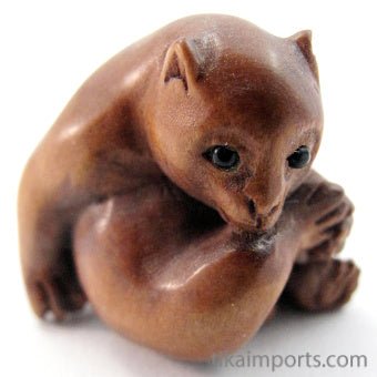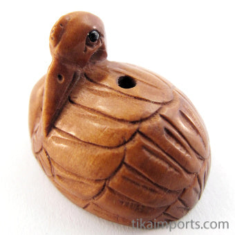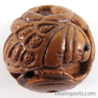 These handcarved boxwood beads are inspired by antique Japanese ojime. Ojime are the sliding bead on the cord of the inro box. These ojime are hand-carved by contemporary Chinese master-carvers, who take up to four hours to make each one. They range in size from ¾ to 1 inch.